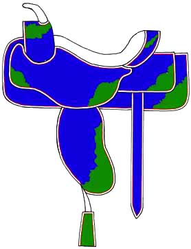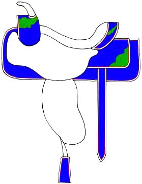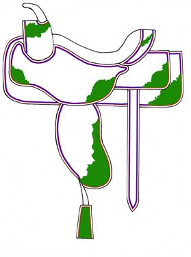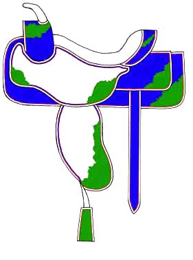 Carving AND Stamping layouts on the saddle: Click on the thumbnail below to see a larger image of the layout. The area highlighted in blue is where the stamping would go on the saddle. The area highlighted in green is where the carving would go on the saddle. |